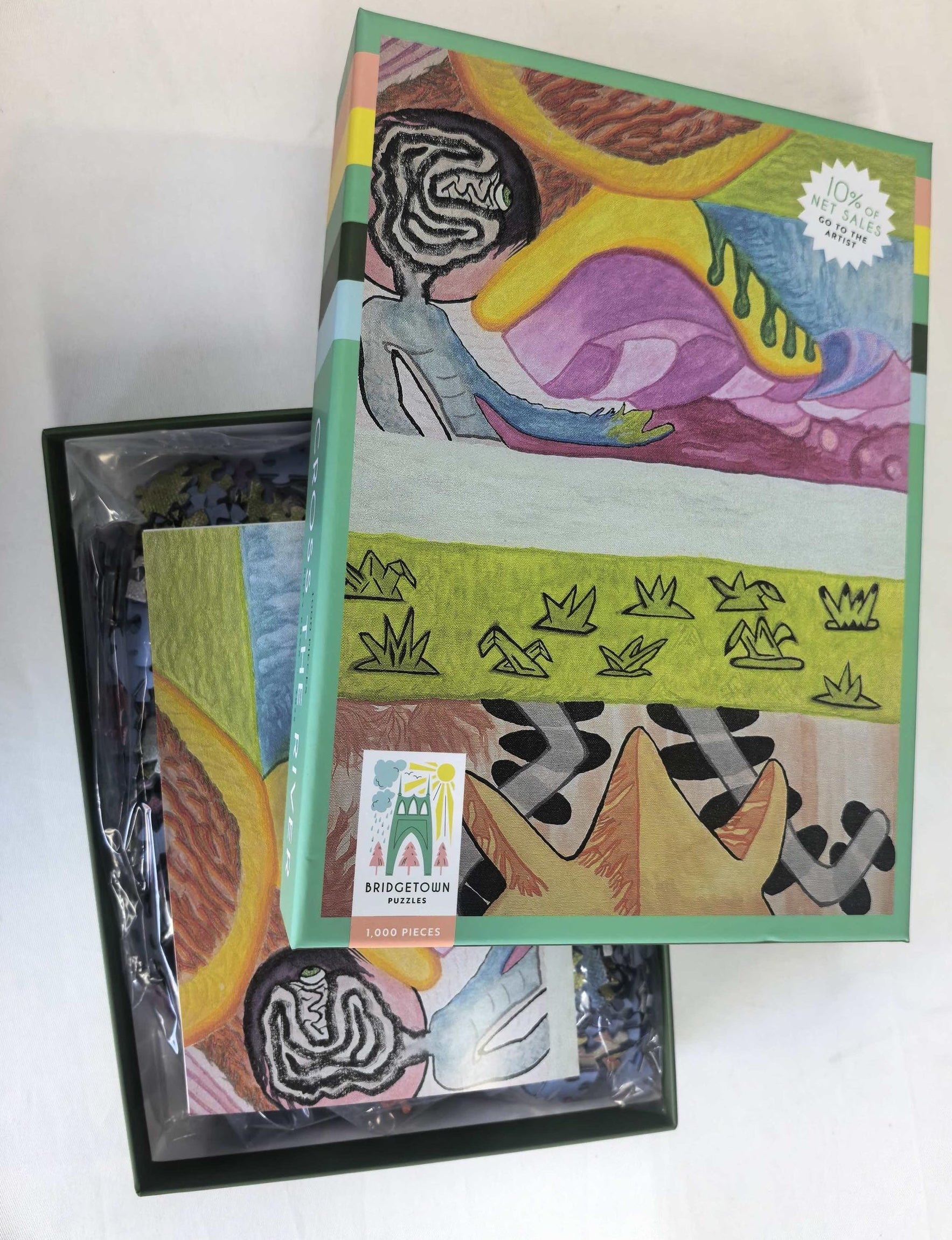 1000 piece jigsaw puzzle printed on sturdy blue board.